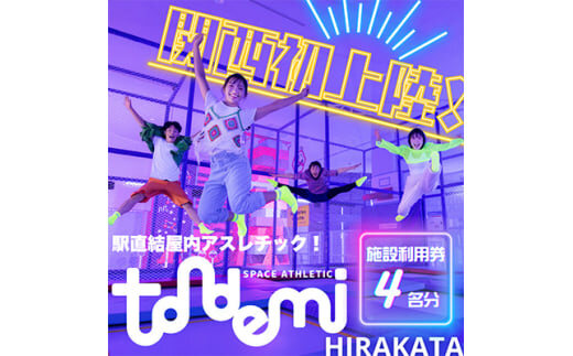 ■お礼品の内容について ・駅直結 屋内 アスレチック 施設 トンデミ施設利用券 4名分[利用券4枚] サービス提供地:大阪府枚方市 ■提供サービス 利用時間について 当チケットで利用可能な時間:90分制 |