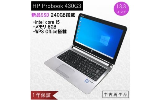 ■お礼品の内容について ・HP Probook 430 G3(中古再生品)[1台] 加工地:茨木市 ■原材料・成分 型番 : HP Probook 430G3(中古再生品) OS : Windows 10 Home CPU : intel Core i5 6200U@2.3GHz メモリ : 8GB 容量 : SSD 240GB(新品) 画面サイズ : 13.3インチ その他 : USB3.0×2 / USB 2.0 ×1 / VGA端子 / HDMI端子 / SDカードスロット / 有線LANポート / WPS Office入/ ACアダプタ付 外形寸法 : 326(幅)×234(奥行)×21(高さ)mm(概算) 重量 : 1.5kg(概算) ※再生作業は株式会社かんでんエルハートにて行っています。 |