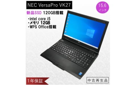 ■お礼品の内容について ・NEC VersaPro VK27MD-N (中古再生品)[1台] 加工地:茨木市 ■原材料・成分 型番 : NEC VersaPro VK27MD-N (中古再生品) OS : Windows 10 Home CPU : intel Core i5 4310M@2.7GHz メモリ : 12GB 容量 : SSD 120GB(新品) 画面サイズ : 15.6インチ その他 : USB3.0×4 / VGA端子 / HDMI端子 / SDXCカードスロット / 有線LANポート / テンキー / WPS Office入/ ACアダプタ付 外形寸法 : 378(幅)×266(奥行)×35(高さ)mm(概算) 重量 : 2.4kg(概算) ※再生作業は株式会社かんでんエルハートにて行っています。 |