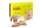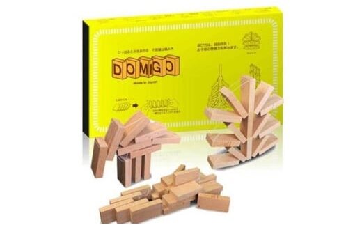 DOMIGOは5つの木のドミノを糸でつなげた木製玩具で、1セット50個のドミノが入っています。DOMIGOは両端をひっぱるとビヨーンと立ち上がる不思議な積み木です。連続して並べることでドミノ倒しを楽しんだり、色々な形に積み上げ、パズルのようなチャレンジ問題で遊ぶこともできる知育玩具です。