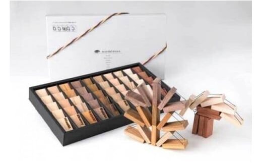 DOMIGO world treesは5つの木のドミノを糸でつなげた木製玩具で、10種類の木材を使用しております。DOMIGOは両端を引っ張るとビヨーンと立ち上がる不思議な積み木です。ドミノ倒しやパズル遊びで楽しんで頂き、また、10種類の木材の知識も勉強できるブックも付いている知育玩具です。良質な素材を使用し、接着剤や塗料を使用しておらず、八尾市で製造していますので安心安全に遊んでいただけます。