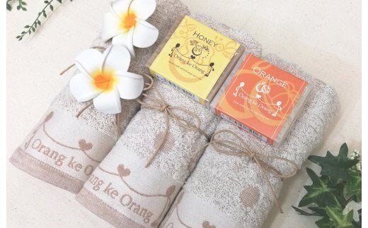 ・泉州タオルフェイスタオル 3枚 サイズ:約33cm×83cm ・石鹸 ハニー1個、オレンジ1個 (石鹸は約80g/個) ※画像はイメージです。 |