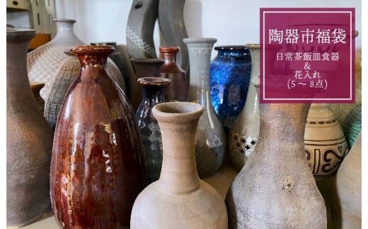 陶器市福袋・日常茶飯皿食器&花入れ(一輪挿し)(5~8点)