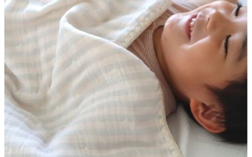 ペールカラーのボーダーに、織で表現する星柄はナチュラルで性別問わず人気のある返礼品。コットン100%の4重ガーゼ生地はふわふわの肌触りとサラッとした軽さが特徴。