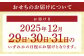 出荷時期 | 【配送不可地域】離島(東京都:青ヶ島、利島、御蔵島、小笠原諸島、式根島、沖縄県:北大東島、南大東島)への配送はお受けできません。 ・配送方式は冷凍(宅配BOX不可)、12月29日・30日・31日のいずれかの日程にお届けとなります。 ・日時指定は承ることができませんので、予めご了承ください。 ・年末年始は配達が大変混み合う時期です。天候や道路事情による遅延等はご了承下さい。 ・送り状発行の手配後は返礼品の配送情報変更はできません。予めご了承ください。 ※発送完了後は、配送業者へご自身で配送先変更依頼を行ってください。 ※配送先変更に伴う転送料はお受取人様のご負担となります。 ※品質保持のため、宅配ボックスへの配達や置き配などのご要望はお受けできません。 |