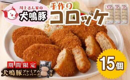 【期間限定】 犬鳴豚の手作りコロッケ(15個入り)+手作りプレミアムハンバーグ(2個入り)【国産 豚肉 泉佐野ブランド豚 犬鳴ポーク】