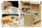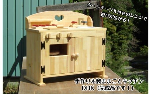 水とお湯で色分けしている蛇口とガス、レンジのツマミがくるくる回ります。扉の中にはレンジと収納庫があり、ターンテーブルは手動で回せます。お子様の成長を見届けるたった1つのスパイスに使ってみませんか?
