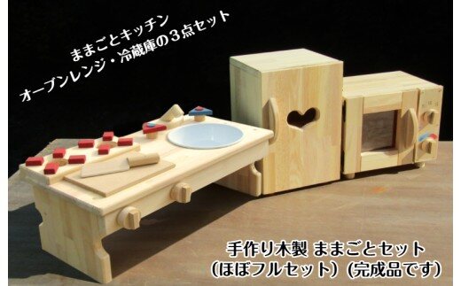 床に座って出来るままごとキッチン、クルクル回せるターンテーブル付きのオーブンレンジ、玉子立てや野菜室付きの冷蔵庫の3点セットです。子供が目をキラキラさせて遊ぶ様、真剣な目で調理する姿、その様子を見るのが楽しい大人!