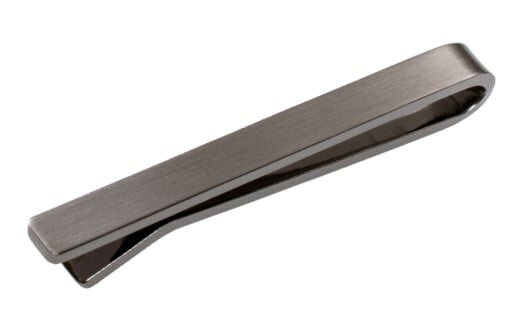 メンズ雑貨ブランドTAVARATのクリップ式ネクタイピン。素材にバネ性の高いりん青銅を使用。表面にはサテーナ加工を施し、シンプルなデザインの中にアクセントが施されています。黒ニッケルメッキ×サテーナ加工でわずかに黒味を帯びた上品な色合い仕上げています。
