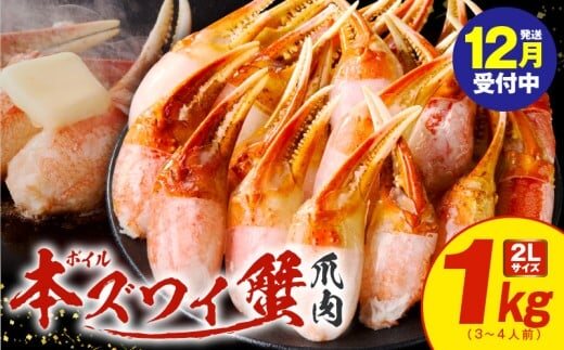 【年内発送】ボイル本ズワイ蟹爪肉 1kg カット済み 2Lサイズ(3-4人前)