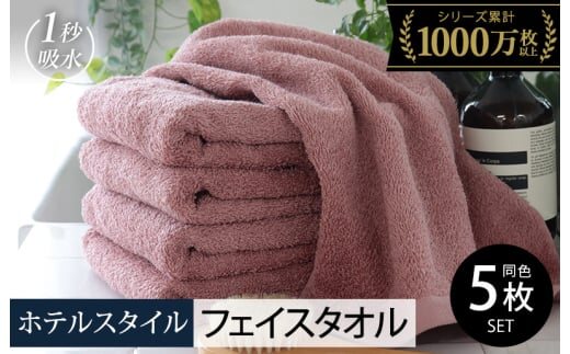 【スピード発送】ヒオリエ ホテルタオル フェイスタオル 5枚 ダスティピンク【タオル 泉州タオル 吸水 普段使い 無地 シンプル 日用品 ふわふわ ふかふか 家族 たおる 一人暮らし】