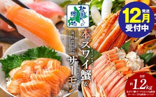 【年内発送】本ズワイ蟹 ビードロカット 1kg 蟹酢付 昆布塩加工 & アトランティックサーモン 200g 海鮮食べ比べセット【北国からの贈り物】