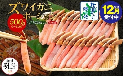 【年内発送】ズワイ蟹 ポーション 500g前後 生食可 蟹酢付 約3-4人前 昆布塩加工 【無地熨斗 しゃぶしゃぶ かに カニ ズワイガニ 脚 ズワイ蟹 ずわい蟹 ずわいがに むき身 生食 刺身 蟹肉 北国からの贈り物】