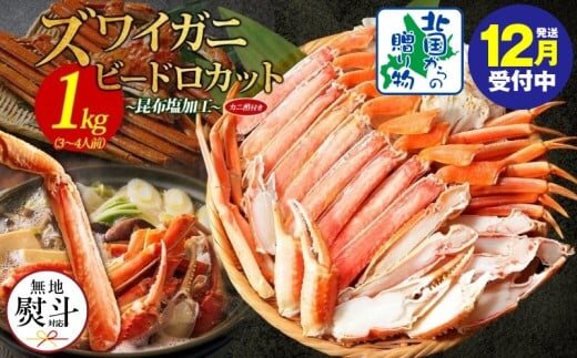 【年内発送】本ズワイ 1kg前後 3-4L ビードロカット 蟹酢付 昆布塩加工 ポーション 【無地熨斗 しゃぶしゃぶ 刺身 かに カニ 脚 本ズワイ蟹 本ずわい蟹 海鮮 北国からの贈り物】