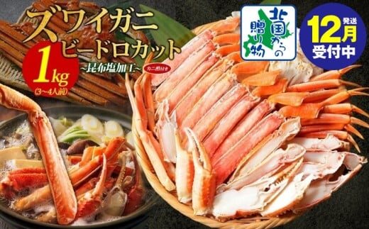 【年内発送】本ズワイ 1kg前後 3-4L ビードロカット 蟹酢付 昆布塩加工 ポーション 【しゃぶしゃぶ 刺身 かに カニ 脚 本ズワイ蟹 本ずわい蟹 海鮮 北国からの贈り物】