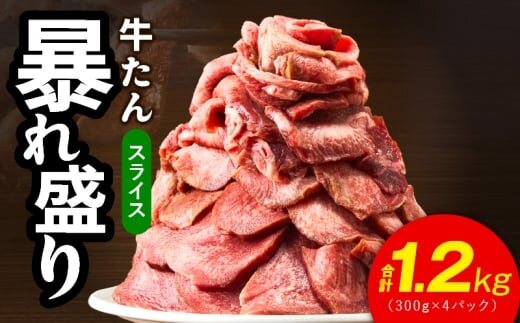牛たん 暴れ盛り スライス 1.2kg【300g×4P 牛肉 牛タン 薄切り 焼肉 BBQ キャンプ アウトドア 焼くだけ 簡単調理 訳あり サイズ不揃い 小分け】