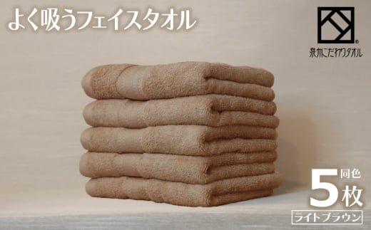 よく吸うフェイスタオル 5枚セット(ライトブラウン) 泉州こだわりタオル