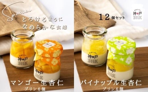 【神戸milk】マンゴー生杏仁プリン 6個&パイナップル生杏仁プリン 6個 合計12個セット【神戸ミルク 手作り 冷蔵 ぷりん スイーツ デザート】