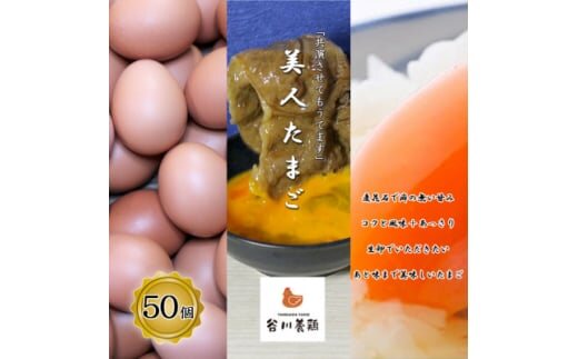 <生みたて濃厚>谷川養鶏の美人たまご 50ヶ入り(※サイズ指定できません)【1390274】