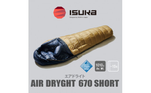 《シュラフ寝袋》エア ドライト 670 ショート タン 登山やアウトドア・キャンプ、車中泊用です。【1621058】