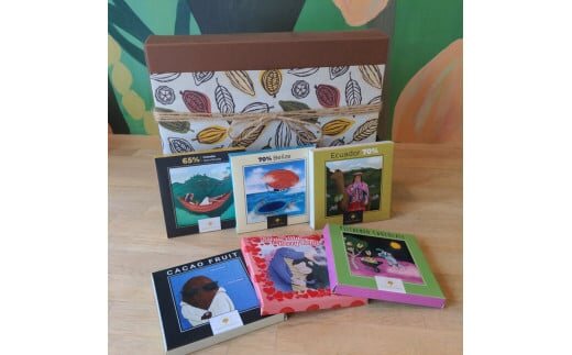 産地違いでお楽しみいただけるダークチョコレート3種類、フレーバーチョコレート3種類。