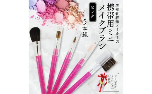 ミニ メイクブラシ 5本セット ピンク 携帯用 ポーチ付 旅行用 持ち運び アイシャドー チップ 涙ぶくろ リップブラシ ブラシ コーム 眉カット チーク 化粧筆 日本製 高級 天然 天然毛 美肌 毛穴 山羊 ヤギ 馬毛 贈り物 プレゼント 母の日 誕生日 贈答品 ギフト 化粧品 旅行用 美容 メンズメイク 大阪府 松原市