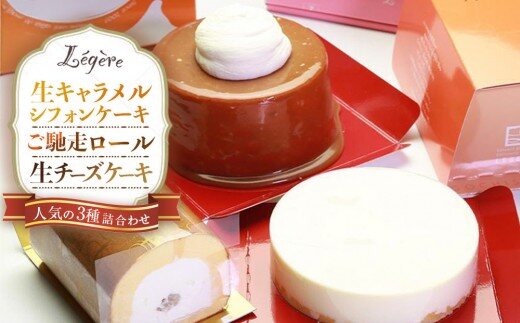 生キャラメルシフォンケーキ(R)とご馳走ロールと生チーズケーキのセット