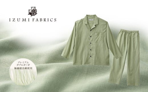■お礼品の内容について ・ガーゼパジャマ(ジュニア:140cm)[1枚] 加工地:和泉市 ■原材料・成分 パジャマ×(上下)1組 サイズ:140cm 材 質:綿100%( たて糸80番手、よこ糸100番手極細超長綿) カラー:ミモザグリーン 生産国:日本 |