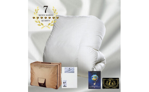 ■お礼品の内容について ・羽毛布団(ダブルサイズ)[約190×210cm×1枚] 加工地:和泉市 ・スヴィンコットン掛布団カバー(ダブルサイズ)[約190×210cm×1枚] 加工地:和泉市 ■原材料・成分 羽毛布団(ダブルサイズ・約190×210cm)×1枚 材質:側生地/綿100%(極細超長綿320番精紡交撚糸) 詰め物:ダウン95%・フェザー5%(ポーランド産マザーグース) 詰物重量:1.7kg 生産国:日本製 スヴィンコットン掛け布団カバー (ダブルサイズ・約190×210cm)×1枚 材質:綿100%(たて糸240番手、横糸360番手極細超長綿スヴィンコットン) カラー:ピュアホワイト 生産国:日本製 【プレミアムゴールドラベル】 ダウンパワー440dp以上のグレードのもので、かつ公的認定検査機関にてゴールドラベル基準に合格した商品に対して、 日本羽毛製品協同組合が発行しているものです。 【ツインキルト】 保温性とフィット性、さらに羽毛の片寄りを防ぐために、二層構造の立体キルト(ツインキルト)を施しています。 【羽毛布団を引き立てる】 軽くてやわらかなカバーをすることで、羽毛布団のボリュームや軽さをより引き立て、快適におやすみいただけます。 【セブンマーカー】メーカー品質基準で表示しております。 たては240番手、よこには360番手という紡績糸では最も細いレベルの精紡交撚糸で丁寧に織り上げました。 <スヴィンコットン> ~シルクのような上品な光沢、柔らかくしなやかな風合い~ スヴィンコットンは、インドの超長綿(SUJATHA)と海島綿(st.VINCENT)が交配されて出来た貴重な超長綿です。 一般的な綿より繊維が細く長く強いので、上品な光沢があり柔らかくてしなやかな素材です。 抗菌防臭加工SEKマーク取得の生地です。 カバー取付マジックテープ8箇所付き |