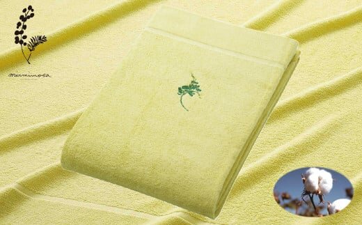 オーガニックコットン タオルケット ミモザ 刺繍入 (色:ミモザイエロー)【1411623】