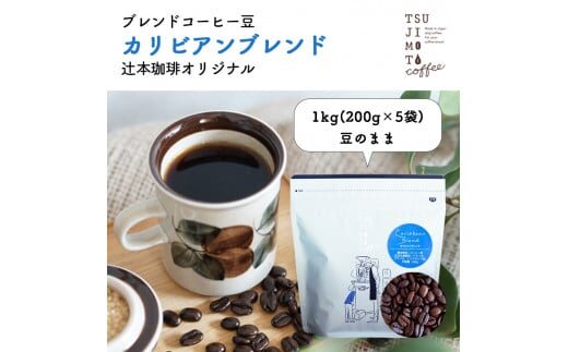 コーヒー豆 自家焙煎 カリビアンブレンド 1kg(200g×5袋)<豆のまま>深煎り 辻本珈琲【1502838】