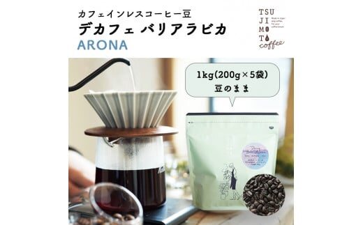 コーヒー カフェインレス 自家焙煎 デカフェバリ-アロナ- 1kg(200g×5袋)豆のまま 中深煎【1502844】