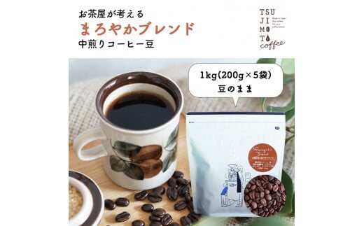 コーヒー豆 自家焙煎 まろやかブレンド 1kg(200g×5袋)<豆のまま>【1502860】