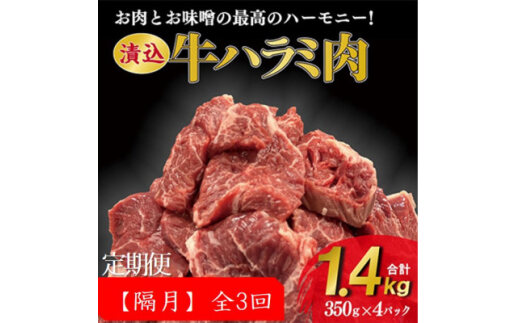 <2ヵ月毎定期便>牛肉ハラミ 1.4kg (350g×4) 老舗焼肉店秘伝のタレ仕込み 全3回【4064134】