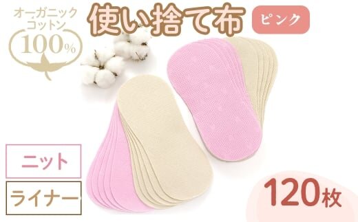 オーガニックコットン100%使い捨て布(ライナー×ニット×120枚×ピンク) 【m90-14-A】【しるばあ衣料研究開発】