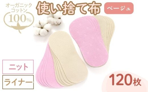 オーガニックコットン100%使い捨て布(ライナー×ニット×120枚×ベージュ) 【m90-14-B】【しるばあ衣料研究開発】