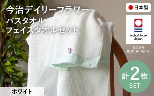 今治デイリーフラワー バスタオル・フェイスタオルセット(ホワイト×2) 【m100-06-B】【トクダ】