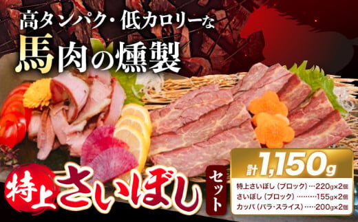 【特上】大阪羽曳野発!希少な馬肉をじっくり燻した芳醇な味わい 馬肉 燻製 特上 さいぼし セット 計1150g 特上さいぼし(ブロック) 220g×2個 さいぼし(ブロック) 155g×2個 カッパ(バラ・スライス) 220g×2個 竹村商店《30日以内に出荷予定(土日祝除く)》羽曳野市 馬 手作り 高タンパク 低カロリー おつまみ 大阪ソウルフード 大阪グルメ ジャーキー 馬の燻製