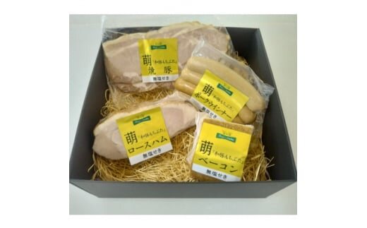 ■お礼品の内容について ・無塩せきハム詰め合わせ[ロースハム200g×1・ベーコン200g×1・ポークウインナー150g×1・焼豚80g×1] 製造地:大阪府摂津市/加工地:大阪府摂津市 ■原材料・成分 【無塩せきロースハム】:豚ロース肉(国産)、食塩、香辛料 【無塩せきベーコン】 :豚バラ肉(国産)、食塩 【無塩せきウインナーソーセージ】:豚肉(国産)、豚脂肪、食塩、米粉、香辛料 【無塩せき焼豚】 :豚モモ肉(国産)、醤油(小麦・大豆を含む)、味醂、清酒(純米酒)、リンゴシロップ、香辛料 ■注意事項/その他 ※画像はイメージです。 使用画像の一部に他の具材等が写っておりますが、お届けするお礼品は、無塩せきハム詰め合わせです。 摂津市で行っている製造加工工程:原材料の仕入れ、整形、漬け込み、加熱、梱包 |