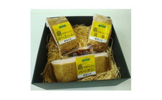 ■お礼品の内容について ・無塩せきハム詰め合わせ[ロースハム390g×1・ベーコン390g×1・焼豚390g×1・焼豚のたれ10g×2] 製造地:大阪府摂津市/加工地:大阪府摂津市 ■原材料・成分 【無塩せきロースハム】:豚ロース肉(国産)、食塩、香辛料 【無塩せきベーコン】 :豚バラ肉(国産)、食塩 【無塩せき焼豚】 :豚モモ肉(国産)、醤油(小麦・大豆を含む)、味醂、清酒(純米酒)、リンゴシロップ、香辛料、 (添付 焼豚のたれ:本醸造醤油、砂糖、本みりん(一部に小麦・大豆を含む)) ■注意事項/その他 ※画像はイメージです。 使用画像の一部に他の具材等が写っておりますが、お届けするお礼品は、無塩せきハム詰め合わせです。 摂津市で行っている製造加工工程:原材料の仕入れ、整形、漬け込み、加熱、梱包 |