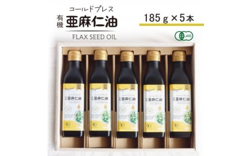 コールドプレス 有機亜麻仁油(アマニ油) 185g×5本 <未精製・低温圧搾><化粧箱入>_オイル 油 亜麻仁油 アマニ油 人気 おすすめ 送料無料 贈答 ギフト プレゼント コールドプレス 化粧箱【1480554】