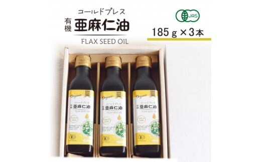 コールドプレス 有機亜麻仁油(アマニ油) 185g×3本 <未精製・低温圧搾><化粧箱入>_オイル 油 亜麻仁油 アマニ油 人気 おすすめ 送料無料 贈答 ギフト プレゼント コールドプレス 化粧箱【1480544】
