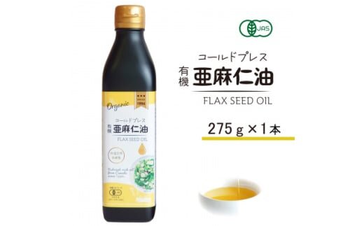 コールドプレス 有機亜麻仁油(アマニ油) 275g×1本 <未精製・低温圧搾>【1579894】