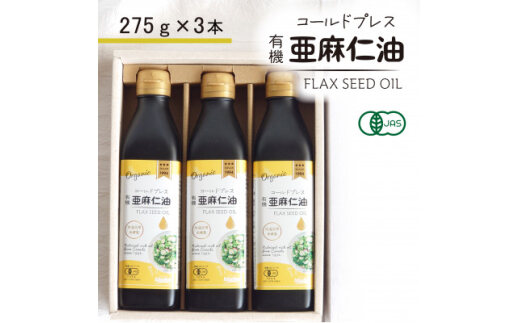 コールドプレス 有機亜麻仁油(アマニ油) 275g×3本 <未精製・低温圧搾><化粧箱入>【1587063】