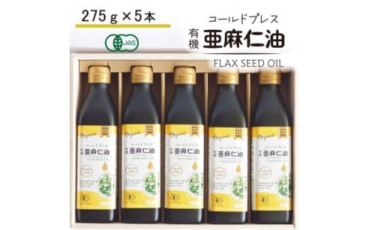 コールドプレス 有機亜麻仁油(アマニ油) 275g×5本 <未精製・低温圧搾><化粧箱入>【1589650】