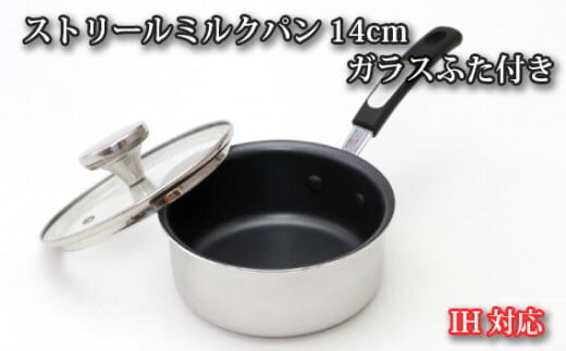 No.153 IH対応 ストリールミルクパン14cm ガラスふた付き / 調理器具 料理 内面フッ素樹脂加工 蓋付き 大阪府