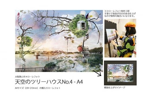 No.180 4-RA4 大阪狭山市×ローレフォト 天空のツリーハウス / 絵画 A4サイズ 実物作品 額入り 大阪府