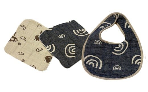 - 6重ガーゼ織スタイ ×1枚 (ネイビー)+ 6重ガーゼ織ハンカチ ×2枚 (ベージュ・ネイビー)