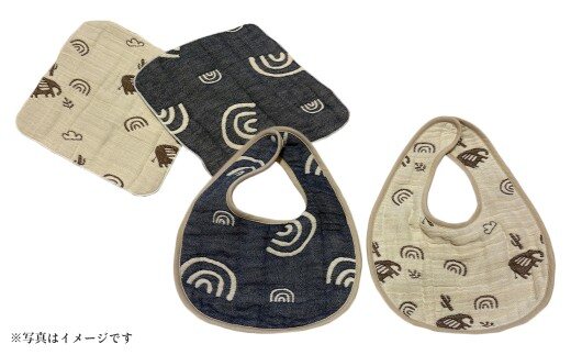 - 6重ガーゼ織スタイ×2枚(ベージュ・ネイビー)+6重ガーゼ織ハンカチ×2枚(ベージュ・ネイビー)