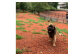 犬の足の負担を考慮したクッション性があるテラコッタ色(赤銅色)の瓦チップを敷き詰めたガーデンです。